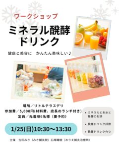 参加費:5,000円(ミネラル醗酵ドリンク、店長のランチ付き)